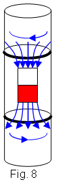 l'imant cau, els corrents induïts (de dalt i de baix) actuen com