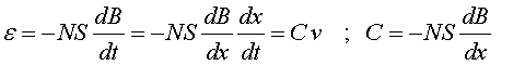 El primer terme és igual a zero, ja que la superfície és la d'una bobina en repòs i per tant és constant. Si tenim en compte que l'imant es mou amb una trajectòria rectilínia x(t) tindrem B(x(t)) , i aplicant la regla de la cadena
