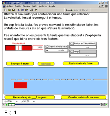 figura, podeu veure la simulació d'Interactive Physics Seqüència formativa1. Presentació de l'activitat amb la pissarra