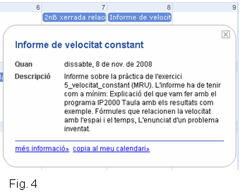 relativa a com utilitzar els calendaris de Google-Calendar a l'adreça Finalment, i perquè pugueu veure un exemple real, aquí trobareu el bloc que he utilitzat amb el meu alumnat. |