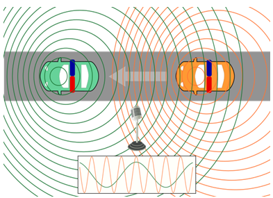 | Fig 10: Efecte Doppler en apropar-se o allunyar-se. |