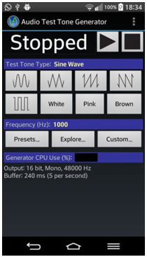 L’aplicació Audio Test Tone Generator instal•lada en l’aparell que es mourà.