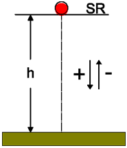 Les magnituds sempre depenen del sistema de referència. Si es deixa caure una bola des d'una altura h i se situa el sistema de referència en la posició inicial de la bola, es pot usar un conveni de signes que consideri positiu cap avall i negatiu cap amunt, com indica la figura 4. En aquests casos, l’equació de la posició davant el temps, que és la que usarem, serà:
