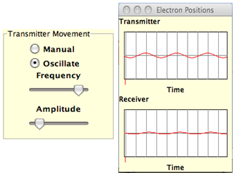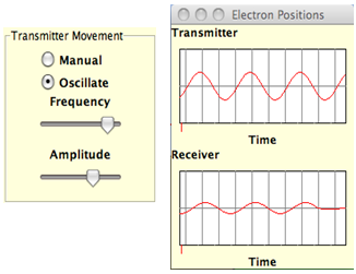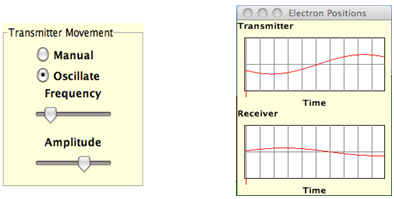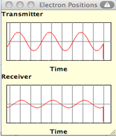 2. L'electró receptor rep l'energia corresponent i oscil•la amb la mateixa freqüència però amb una amplitud inferior, cosa que origina un corrent elèctric altern.