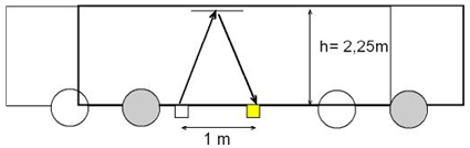 7. Un experimentador (Albert) està situat dins d'un tren que viatja a gran velocitat (vegeu la figura 8). Al terra del tren hi ha una font de llum que emet un breu flaix. La llum es reflecteix en un mirall situat al sostre i torna al terra. Una observadora (Berta) veu l'experiment des de l'andana de l'estació (vegeu la figura 9). La Berta observa que mentre el raig viatjava, el tren ha avançat 1,00 m. a) Compara