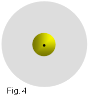 És com si consideréssim la distribució central i totes les possibles posicions i velocitats de la piloteta alhora, com hem representat a la figura 3. És molt millor pensar que el que tenim és només la distribució central i la piloteta ja l'hi posarem més tard... però no l'oblidem! Així, una bona representació del nostre sistema físic és el de la figura 4, en el benentès que caldrà posar la piloteta en un lloc específic, donar-li una empenta i deixar que la força faci la resta. Aquesta imatge és la que habitualment s'empra amb el concepte de camp (elèctric, gravitatori...), però no oblidem que un camp per si sol no és res. El sistema complet necessita alguna cosa més amb la qual pugui interactuar el camp. En el nostre cas, la piloteta.